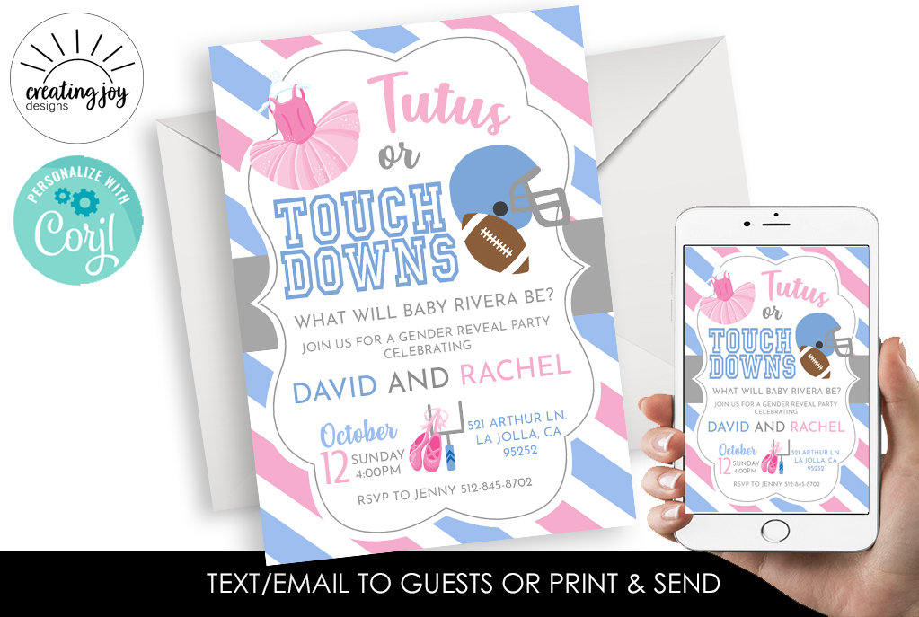 Baseball Or Bows Gender Reveal Invitation Digital Printable Etsy